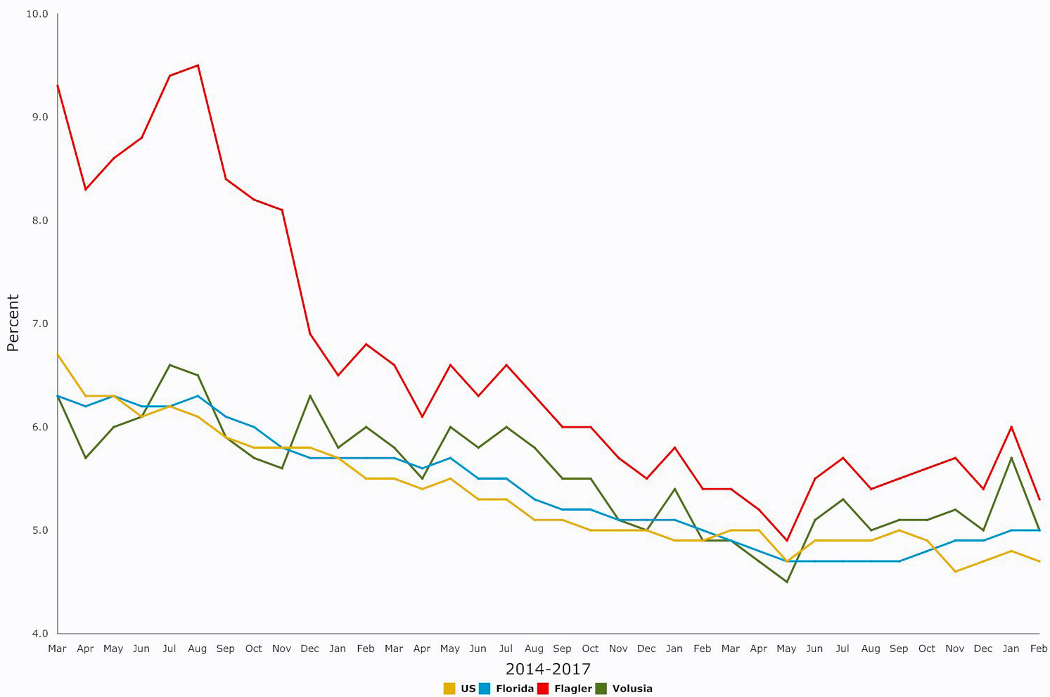 Hitting New Post-Recession Low of 4.8%, Flagler's Unemployment Now Matches Florida's